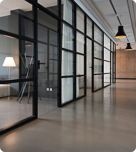 - Двери и перегородки: Используются для зонирования пространства с эстетичной отделкой. Монтаж алюминиевых конструкций выполняется с учетом требований безопасности и эстетики.